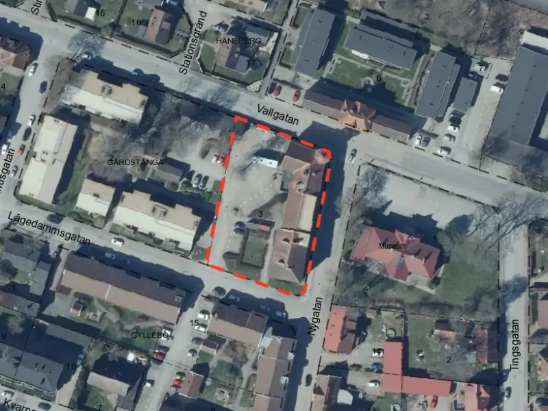 Området som berörs av planläggningen, fastigheten Gårdstånga 3, omfattar en yta på 2 330 kvadratmeter och ligger centrumnära med gång- och cykelavstånd till flertalet funktioner. Fastigheten omgärdas av gatorna Vallgatan i norr, Nygatan i öster, Lågedammsgatan i söder samt bostadsfastigheten Gårdstånga 2 i väst.
