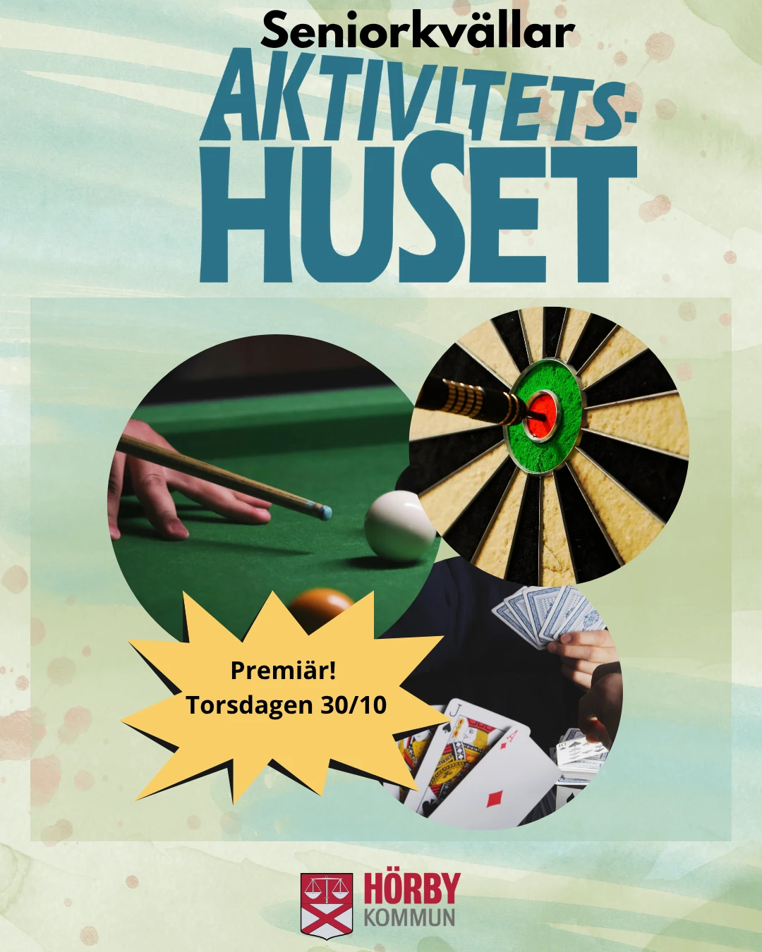 Välkommen till Seniorkvällar på Aktivitetshuset! Vi träffas, umgås och har trevligt med aktiviteter som dart, kortspel och biljard. Kostnadsfritt, ingen...