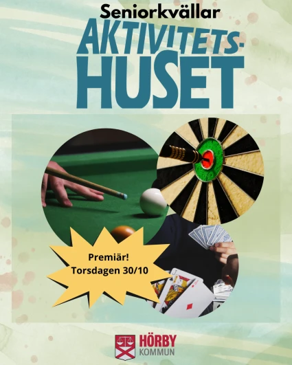 Välkommen till Seniorkvällar på Aktivitetshuset! Vi träffas, umgås och har trevligt med aktiviteter som dart, kortspel och biljard. Kostnadsfritt, ingen...