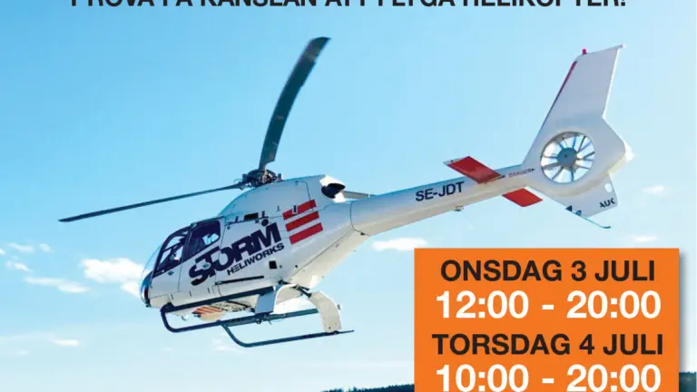 I samband med Hörby Marknad är det möjligt att att ta en flygtur i helikopter. Tänk att få prova känslan av att flyga högt över Hörby!