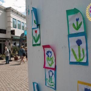 Humlan Djojj och Flugan Flax framträdande på Nya torg under eftermiddagen blev en storfavorit och lockade de yngsta besökarna.