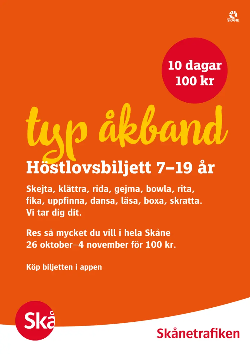 Läs mer om höstlovsbiljetten hos Skånetrafiken.
