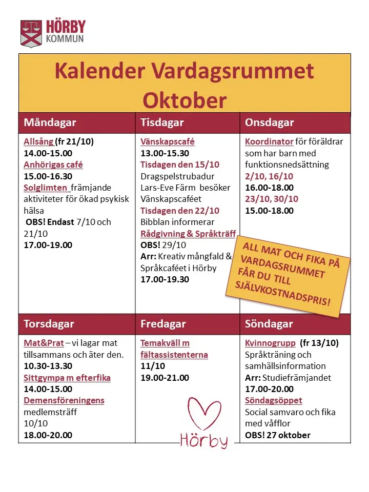 Kommunens lokal Vardagsrummet i Hörby, har nu kommit igång med ett antal aktiviteter för dig som är bor i Hörby.